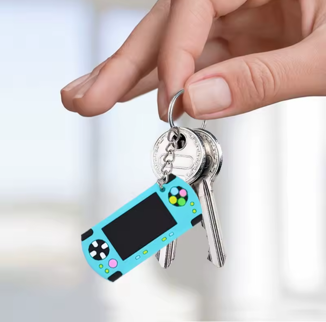 Leuk voor aan je tas, etui of sleutels. Materiaal is metaal en rubber.